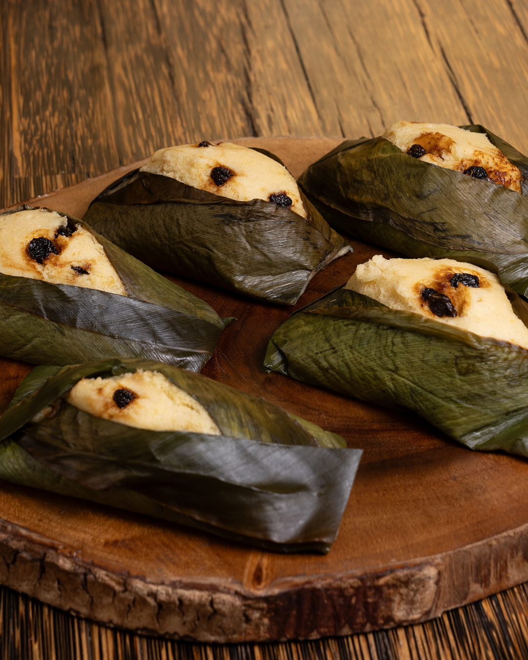 Mini tamal, empanada de añejo y quimbolito con dos bebidas calientes.